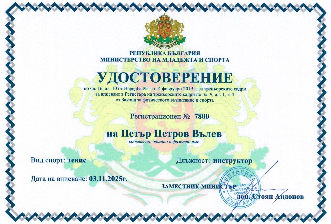 ИЛИАН АНАСТАСОВ - ТРЕНЬОР, ПРЕДСЕДАТЕЛ НА УС НА ТЕНИС КЛУБ "ПИРИН" - тел. 0898557004